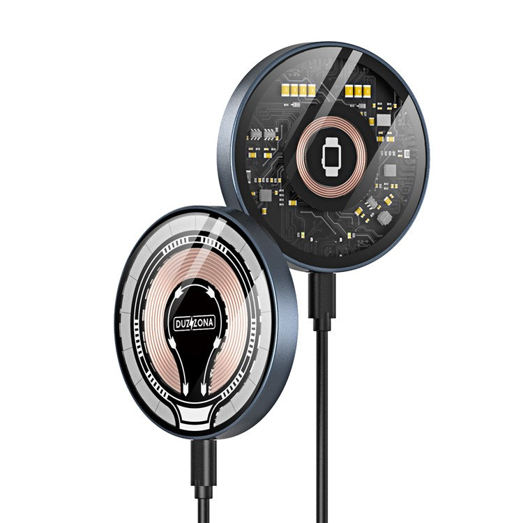 DUZZONA W13 Transparent 15W Max Fast Charging Magnetic Wireless Charger for iPhone 16 Series / Apple Watch 10 / AirPods 4