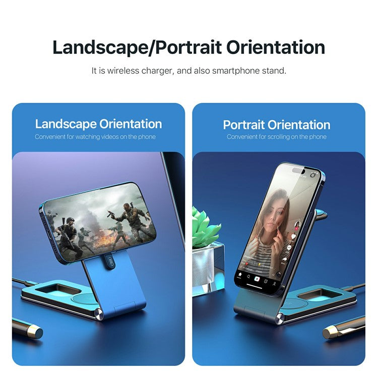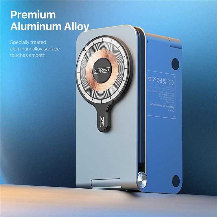 DUZZONA W22 15W 3-in-1 Magnetic Wireless Charger Folding Portable Phone Charger for Earbuds, iWatch