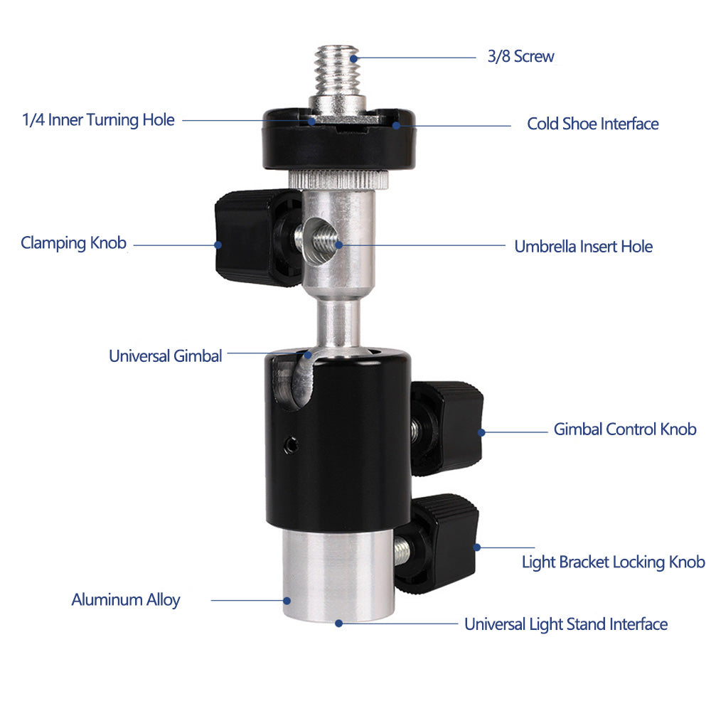 - The top can be changed to have a 1/4 screw connector and a hot shoe connector (not suitable for SONY flash)