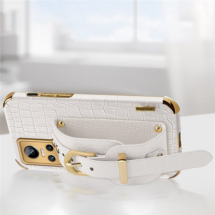Electroplating Crocodile Texture Anti-scratch Phone Case for Realme GT Neo3, Precise Cutout PU Leather Coated TPU Shell with Hand Strap Kickstand - Green