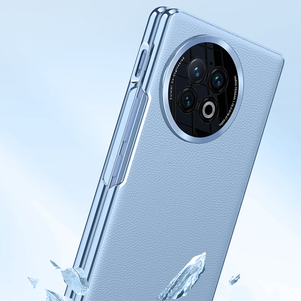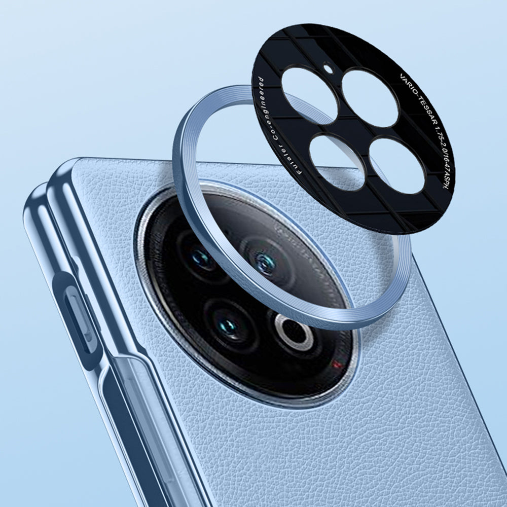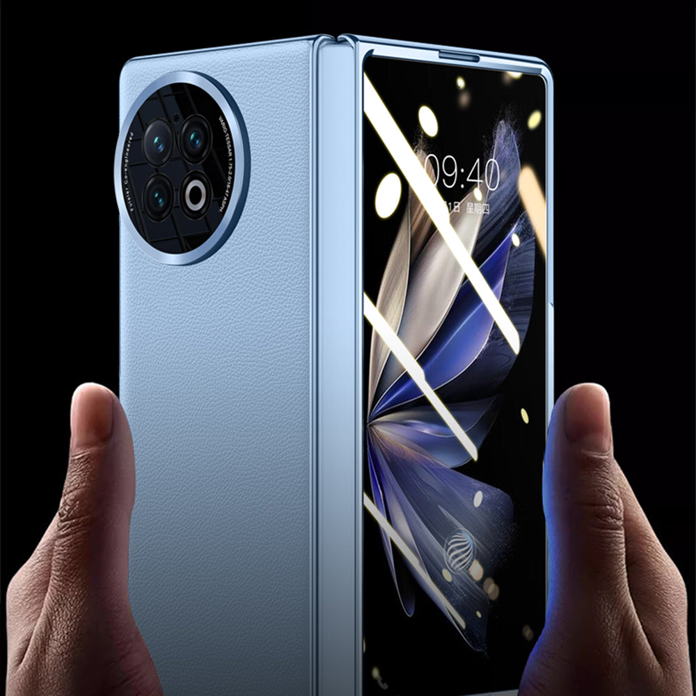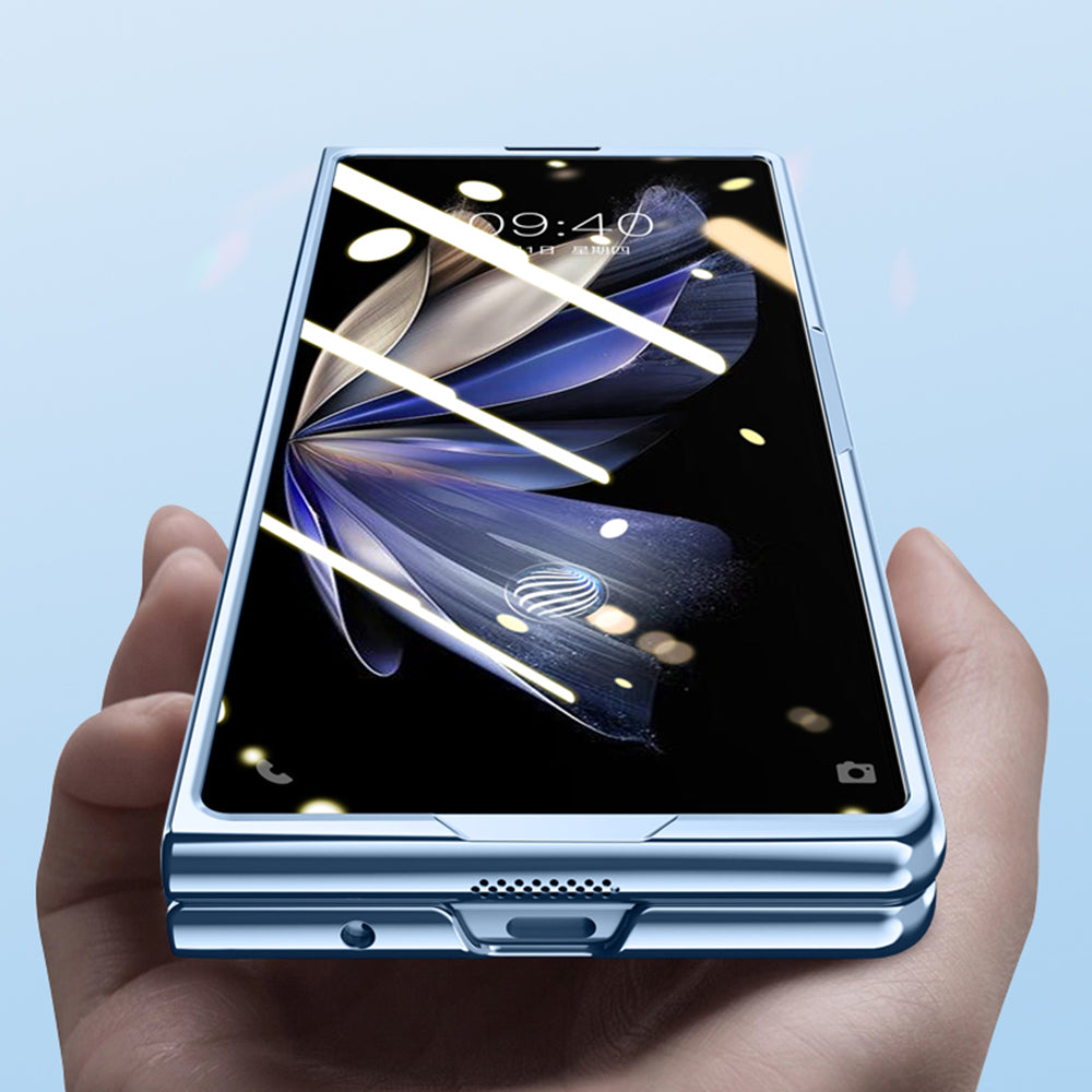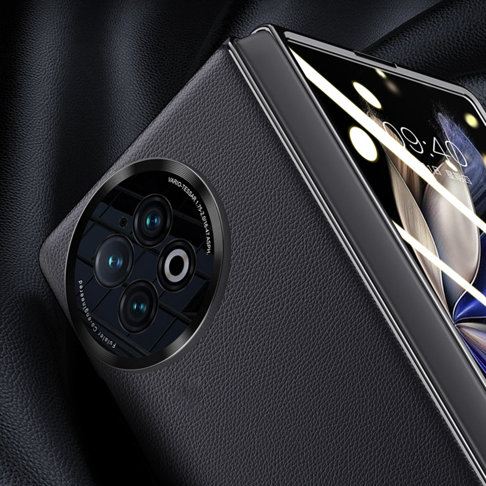 Electroplating Phone Case for vivo X Fold2 , Leather Coated PC Cover Tempered Glass Film (Support Fingerprint Unlock) - Black