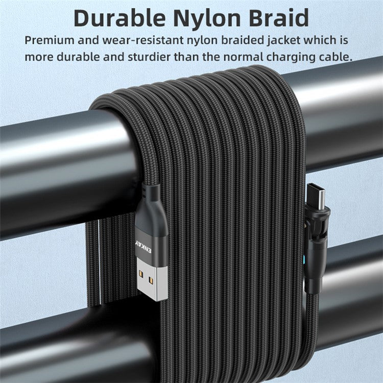 ENKAY 1m USB to Type-C 180 Degree Rotate 3A Fast Charging Data Cable with LED Indicator - Purple