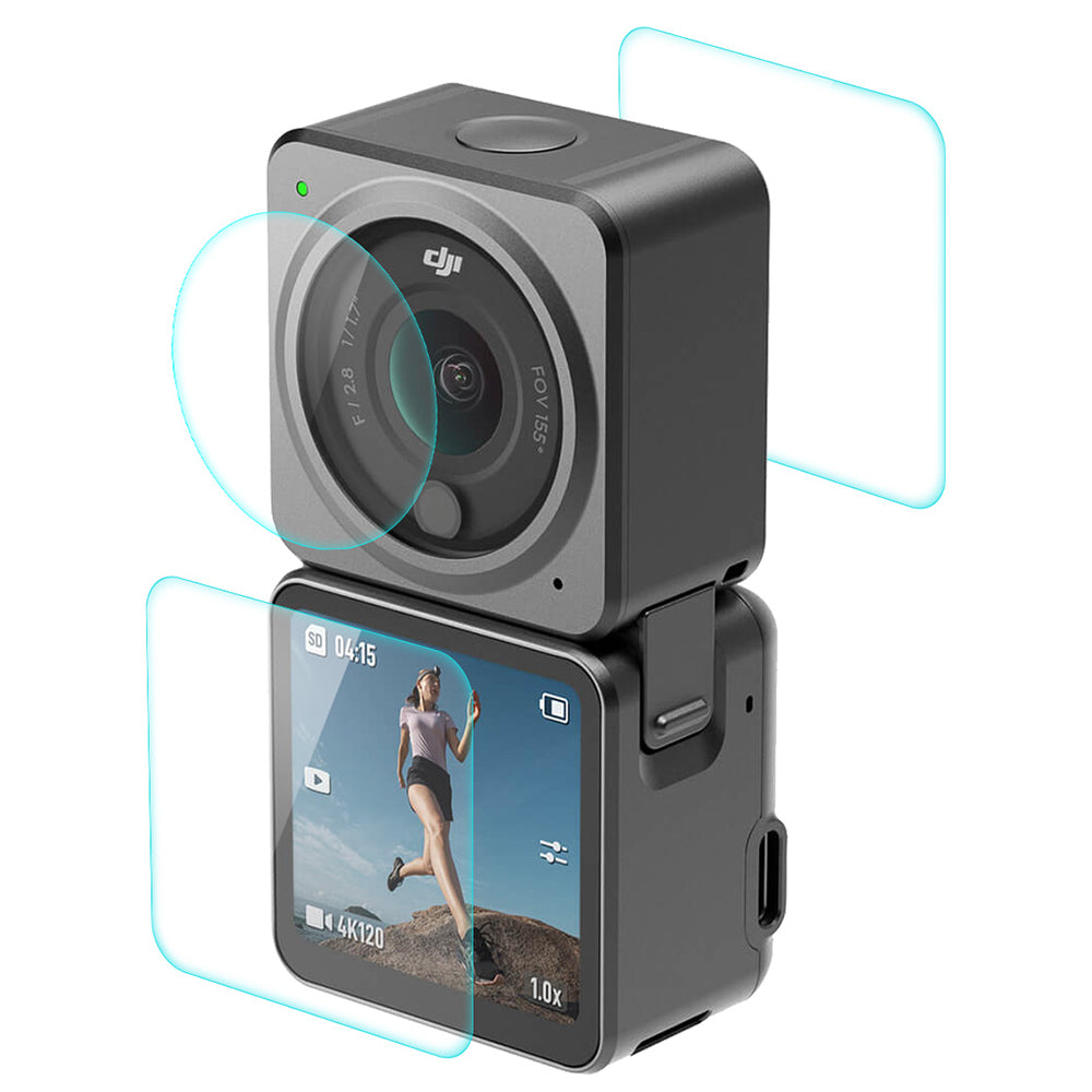 Uniqkart for DJI Action 2 Dual Screen Protector, 9H High-Alumina-Silicon Tempered Glass Front Back Screen Protector + Lens Film