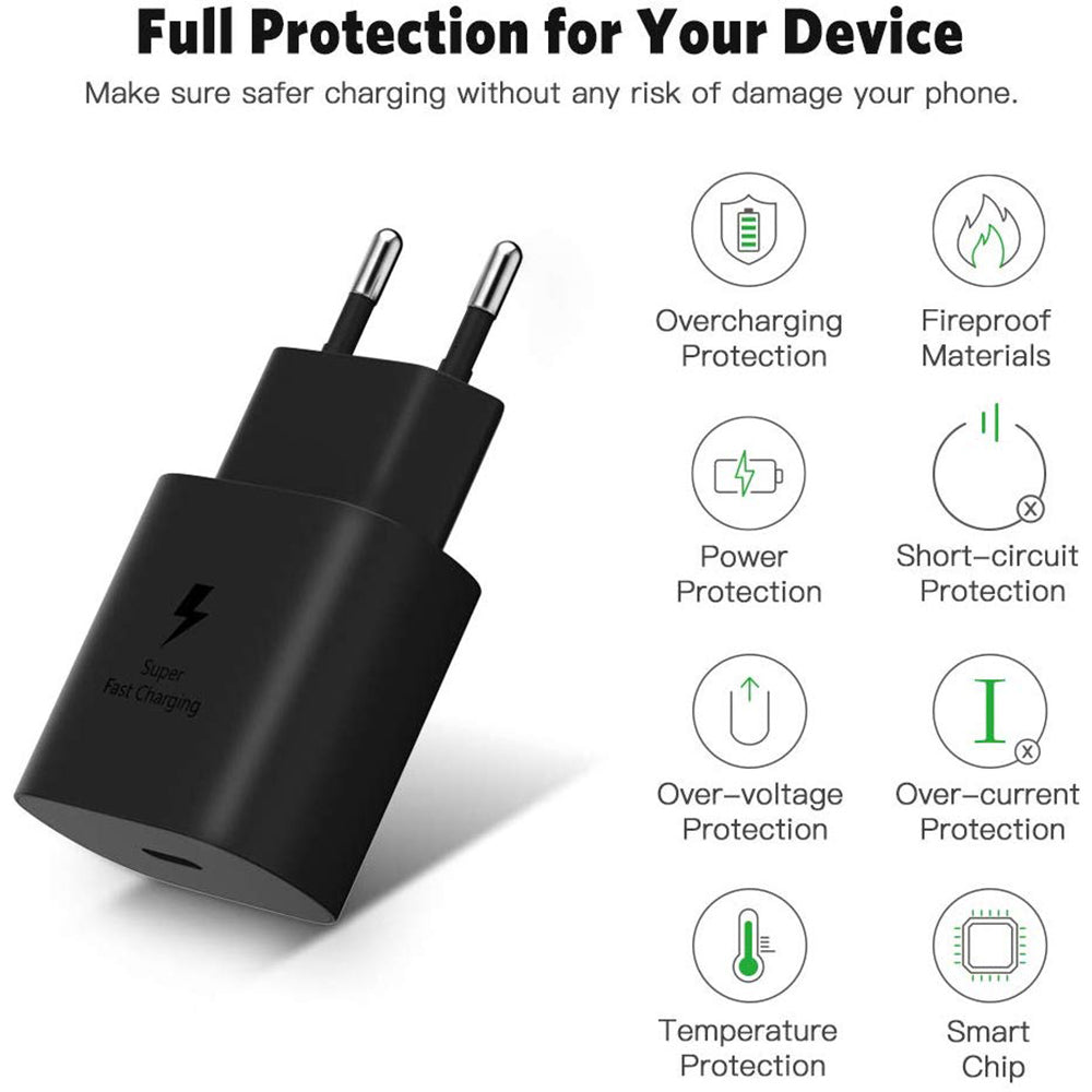 •25W USB-C SuperFast charging wall charger, compatible with PDO, PPS fast charging protocol