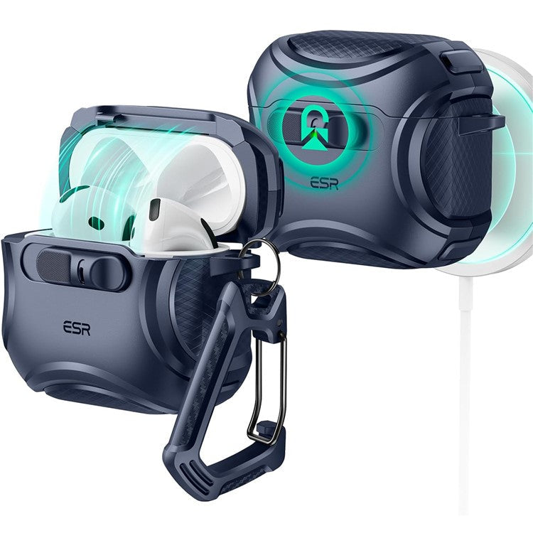 ESR Pulse Magnetic Lock Case for AirPods 4 Headset Protective Cover with Strap - Dark Blue