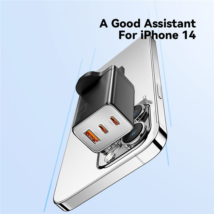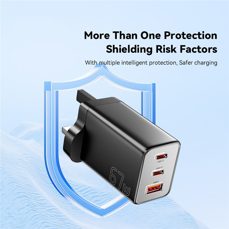 ESSAGER 67W High Power GaN Travel Adapter USB-A + 2 Type-C Portable Wall Charger - UK Plug / Black