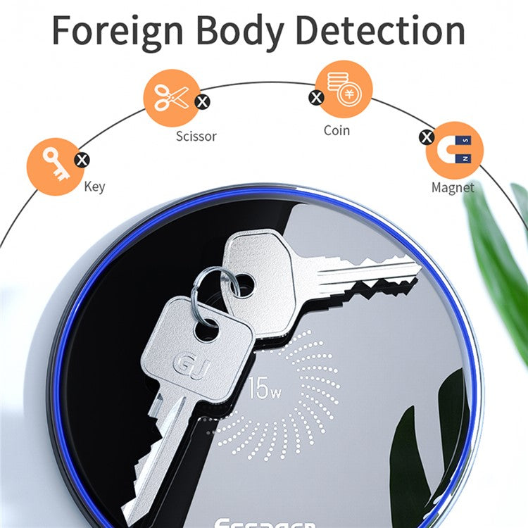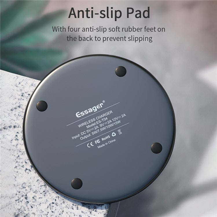 ESSAGER Mirror Series 15W Desktop Quick Charger Wireless Charging Pad (with 1m Type-C Cable) - White