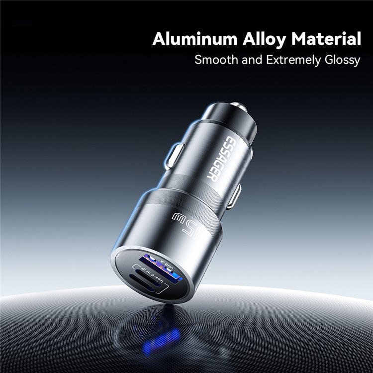 ESSAGER PD 45W Fast Charging Aluminum Alloy Type-C+Ip+USB-A 3-port Car Charger Adapter - Grey