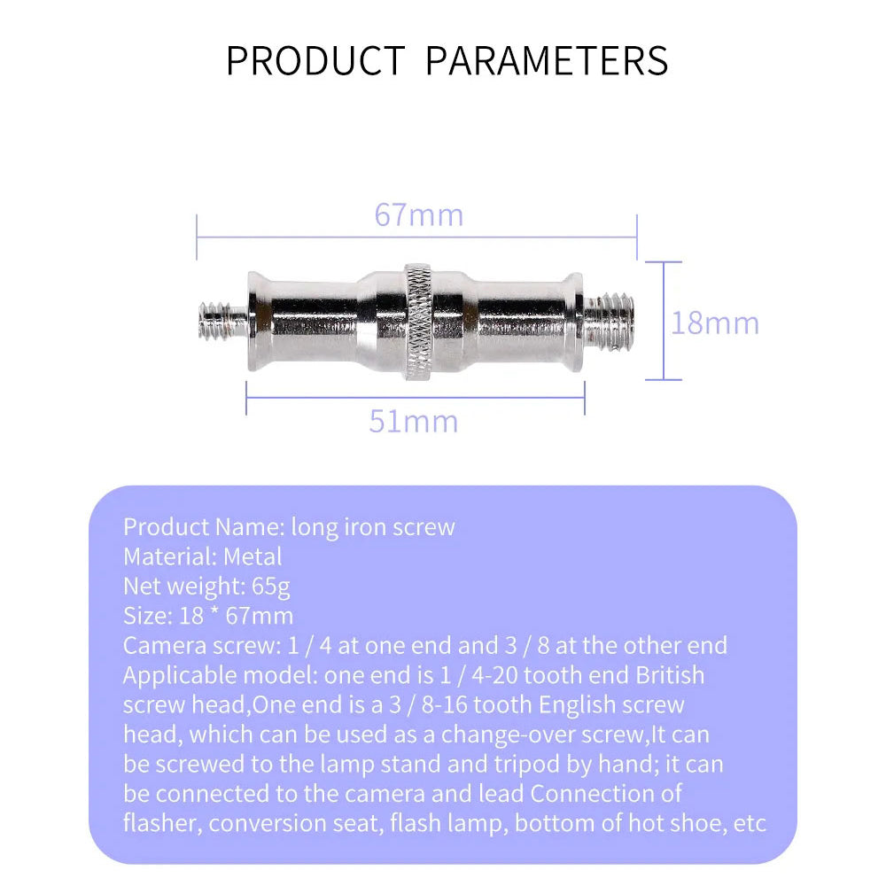 - Can be used as a conversion screw, and can be manually screwed onto a light stand or tripod