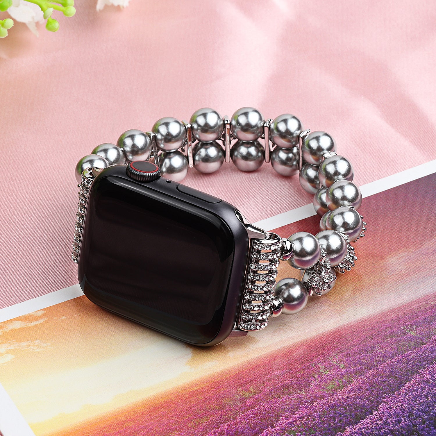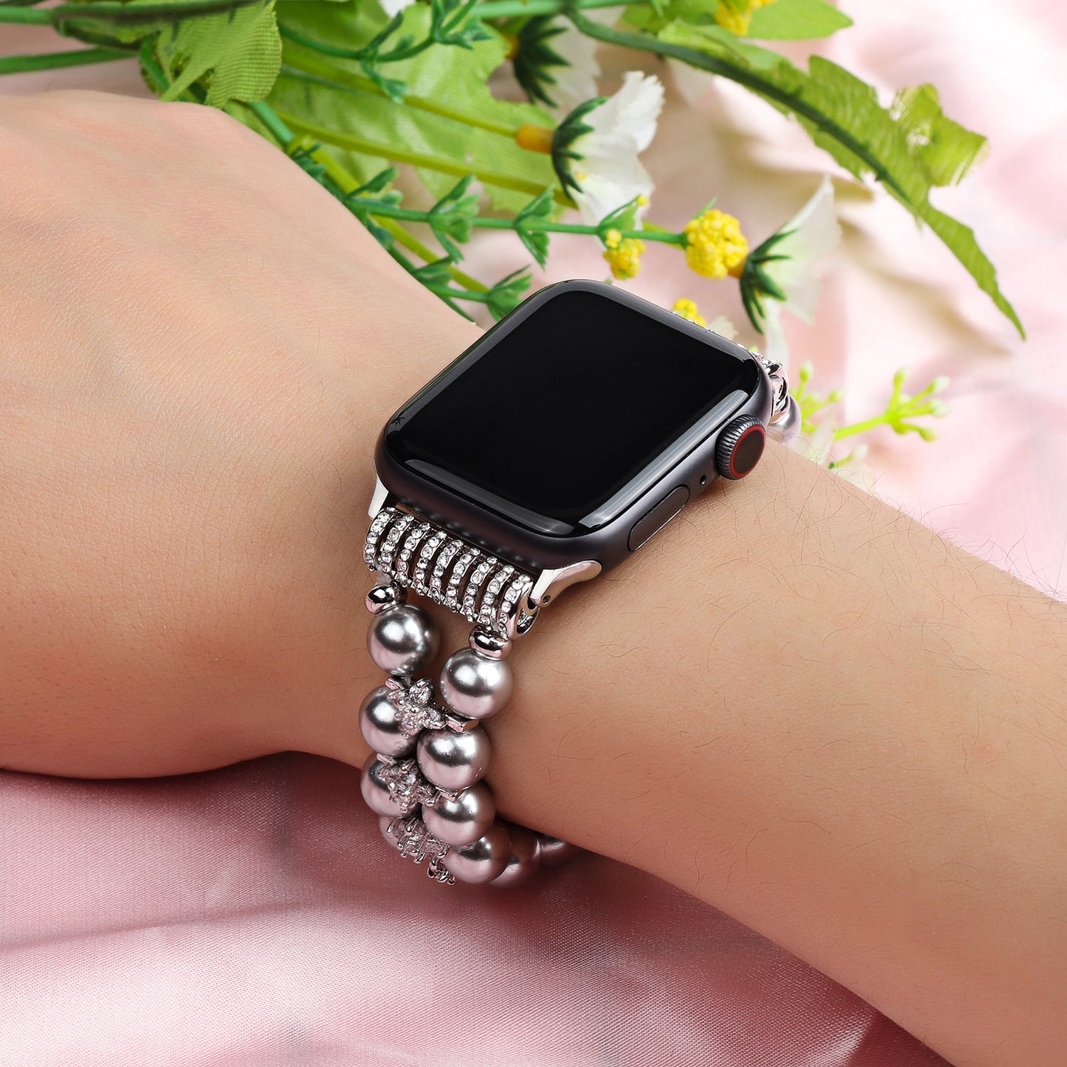 Faux Pearl Rhinestone Decor Wrist Strap Smart Watch Band Bracelet for Apple Watch Series 8 41mm / Series 7 41mm / Series 6 / 5 / 4 / SE / SE(2022) 40mm Series 3 / 2 / 1 38mm - Silver