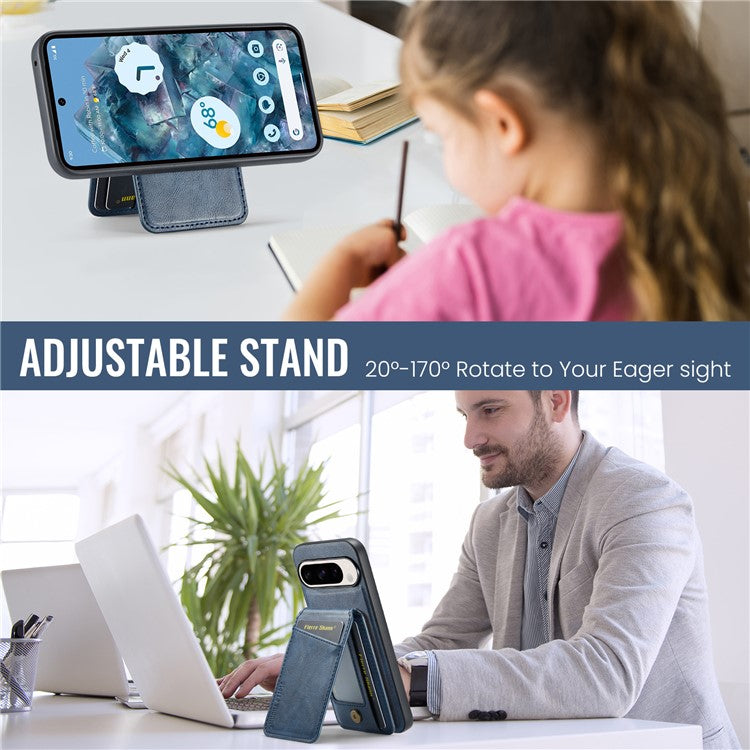 FIERRE SHANN 025 Style For Google Pixel 9 Pro / Pixel 9 Case Card Holder PU+TPU Kickstand Phone Cover - Blue