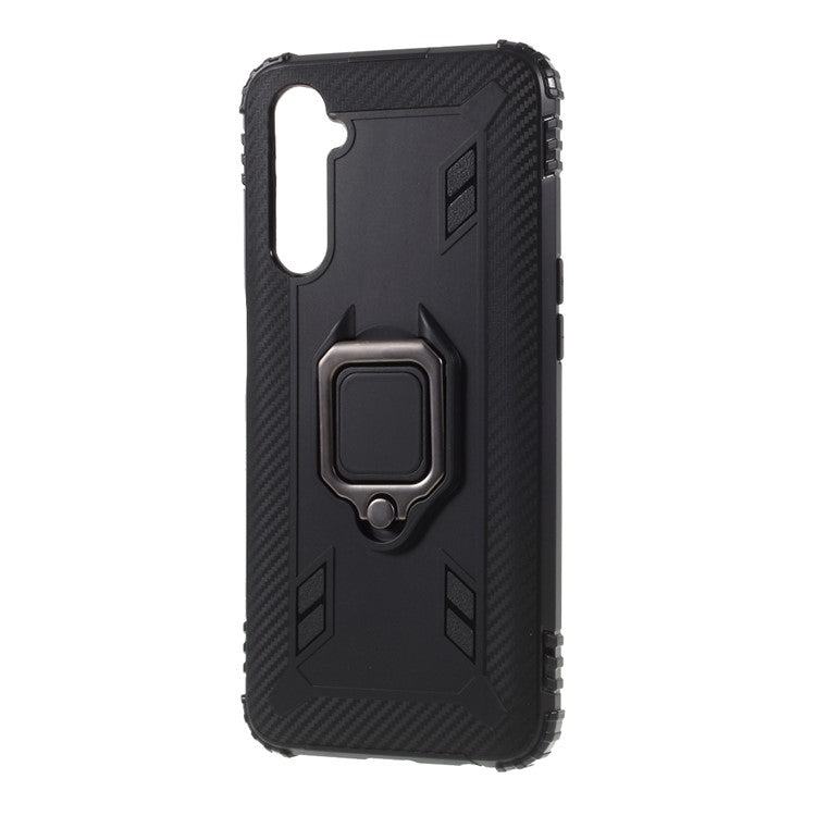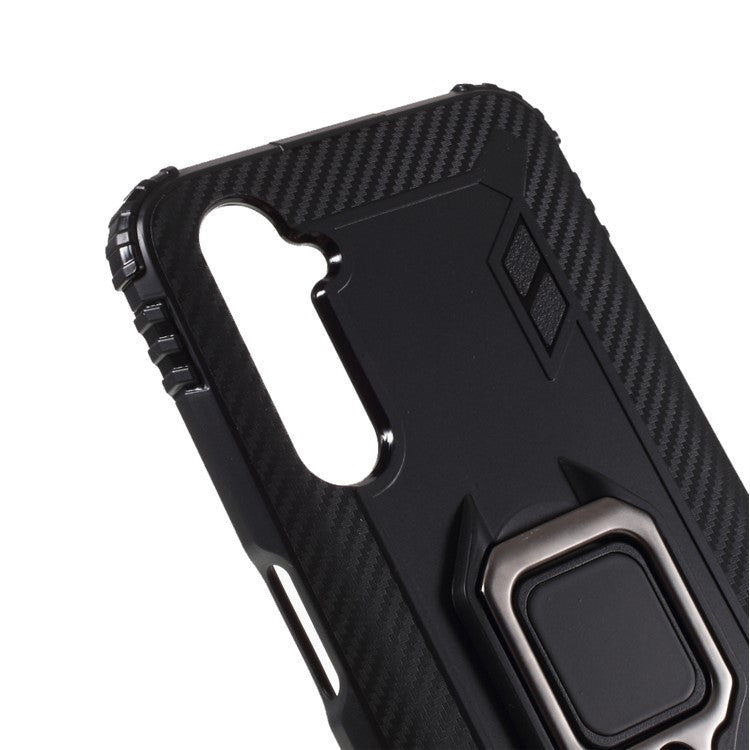 Finger Ring Kickstand TPU Cover Mobile Phone Protective Shell for Realme 6 - Black