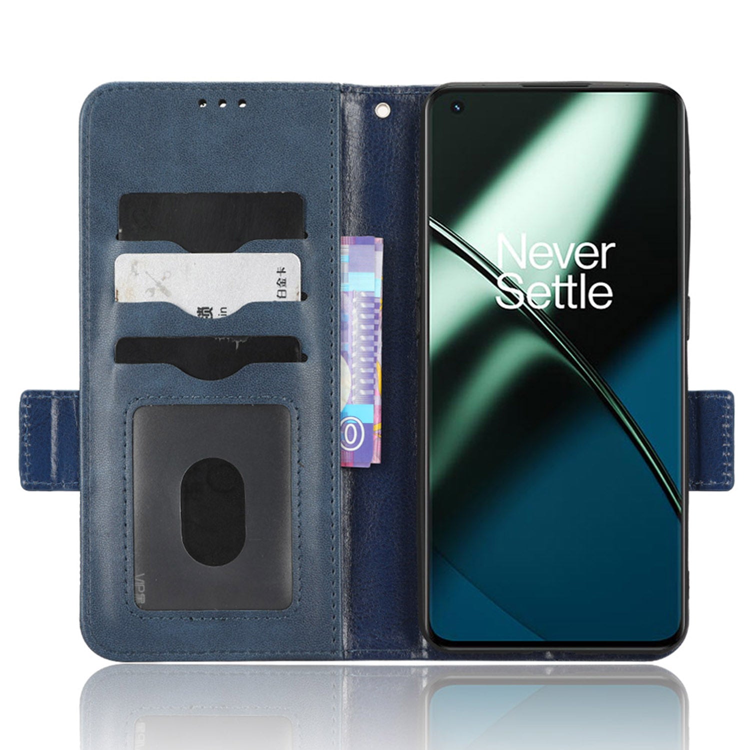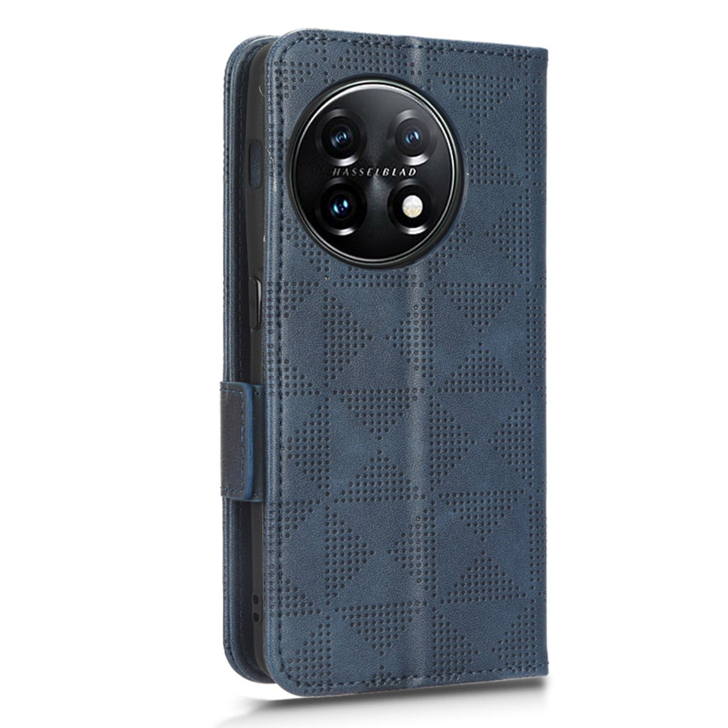 Flip Leather Phone Cover For OnePlus Ace 2 5G / 11R 5G , Wallet Stand Imprinted Triangle Pattern Phone Case - Blue