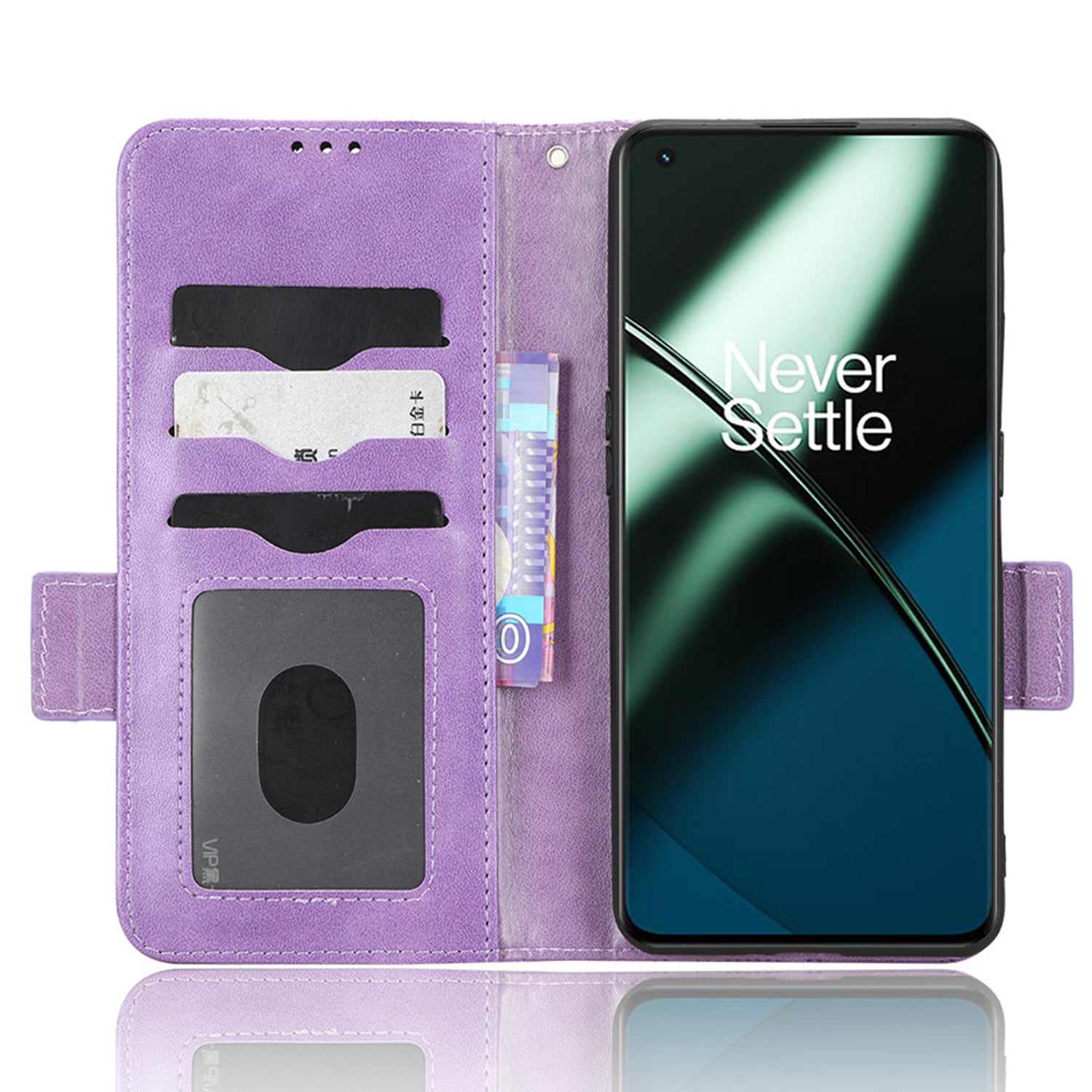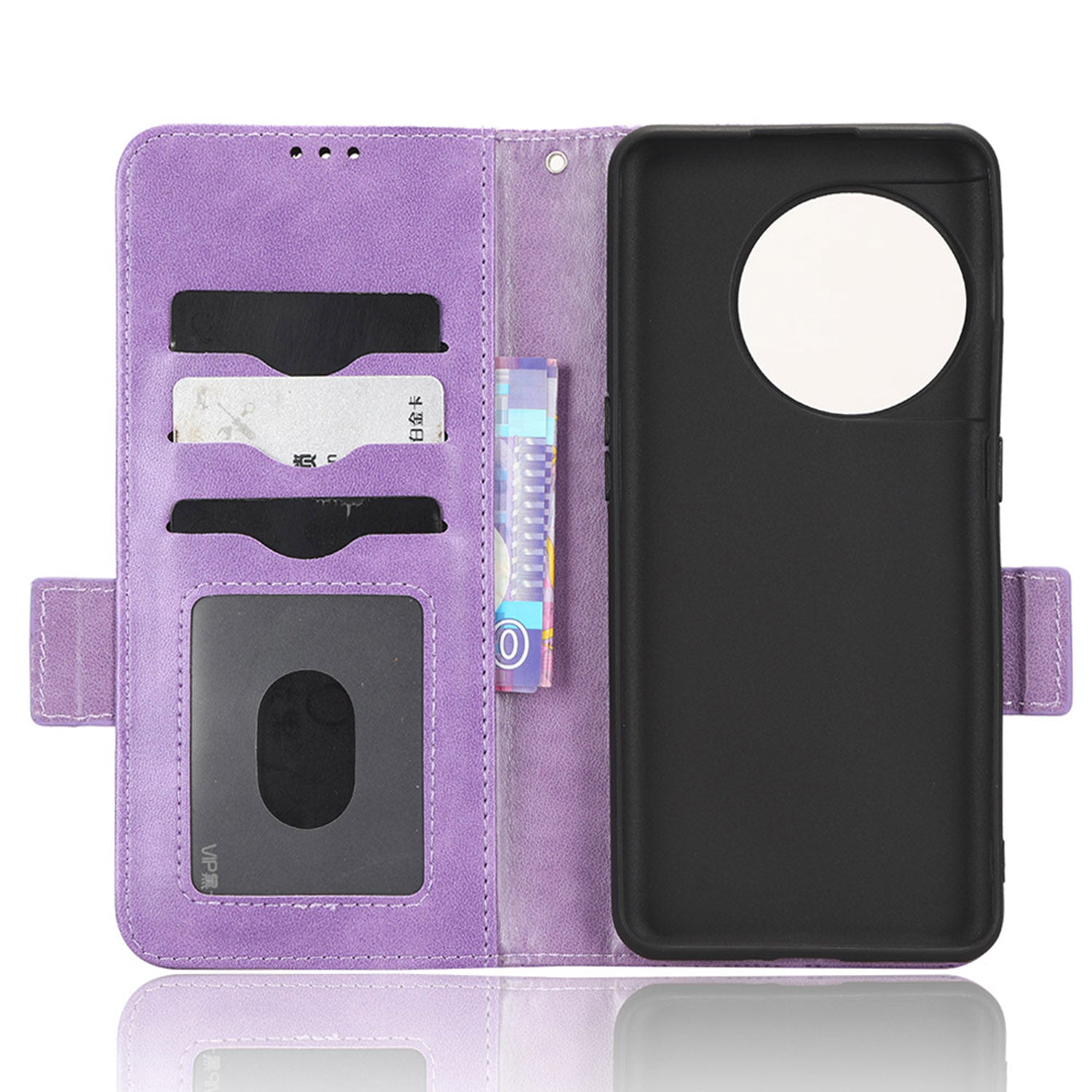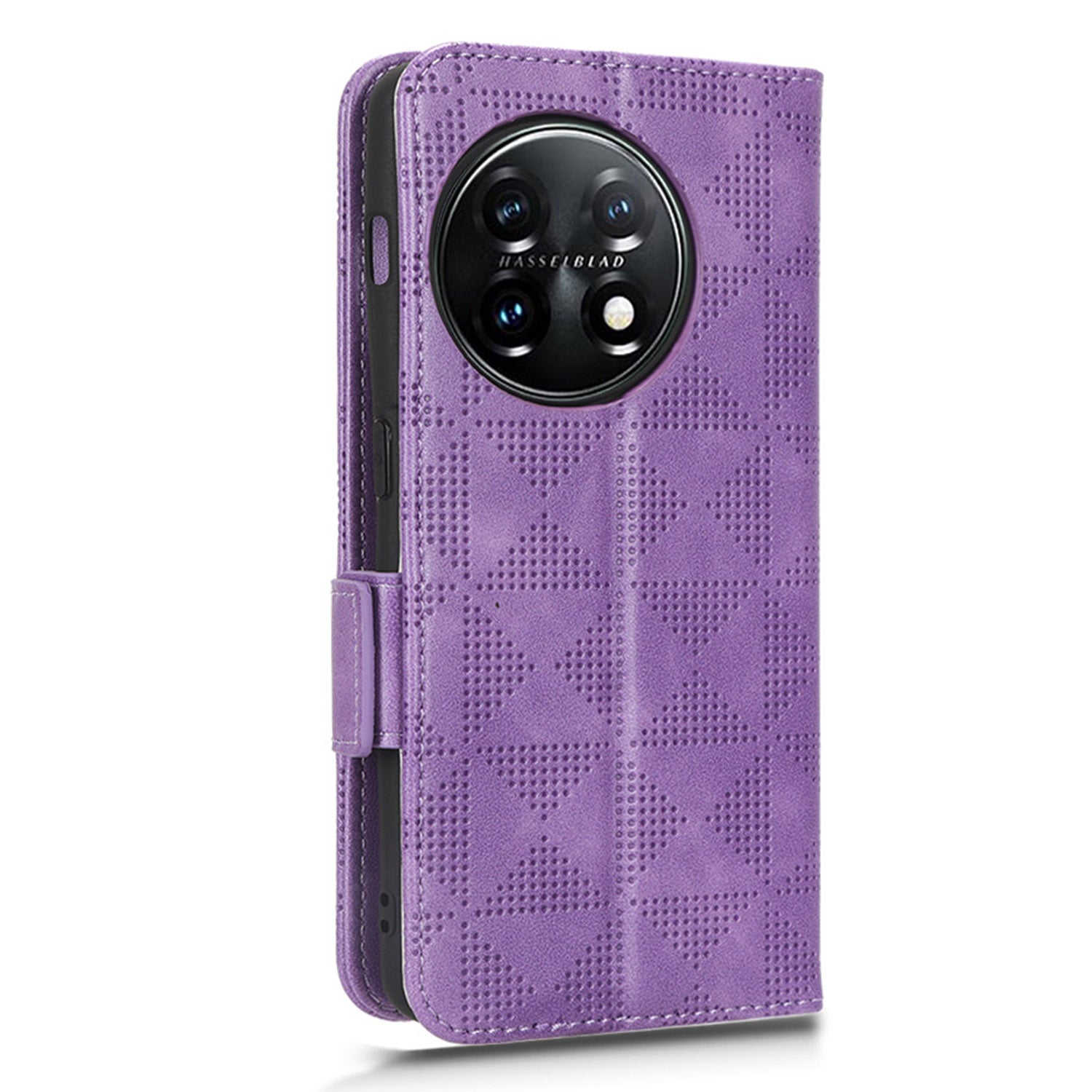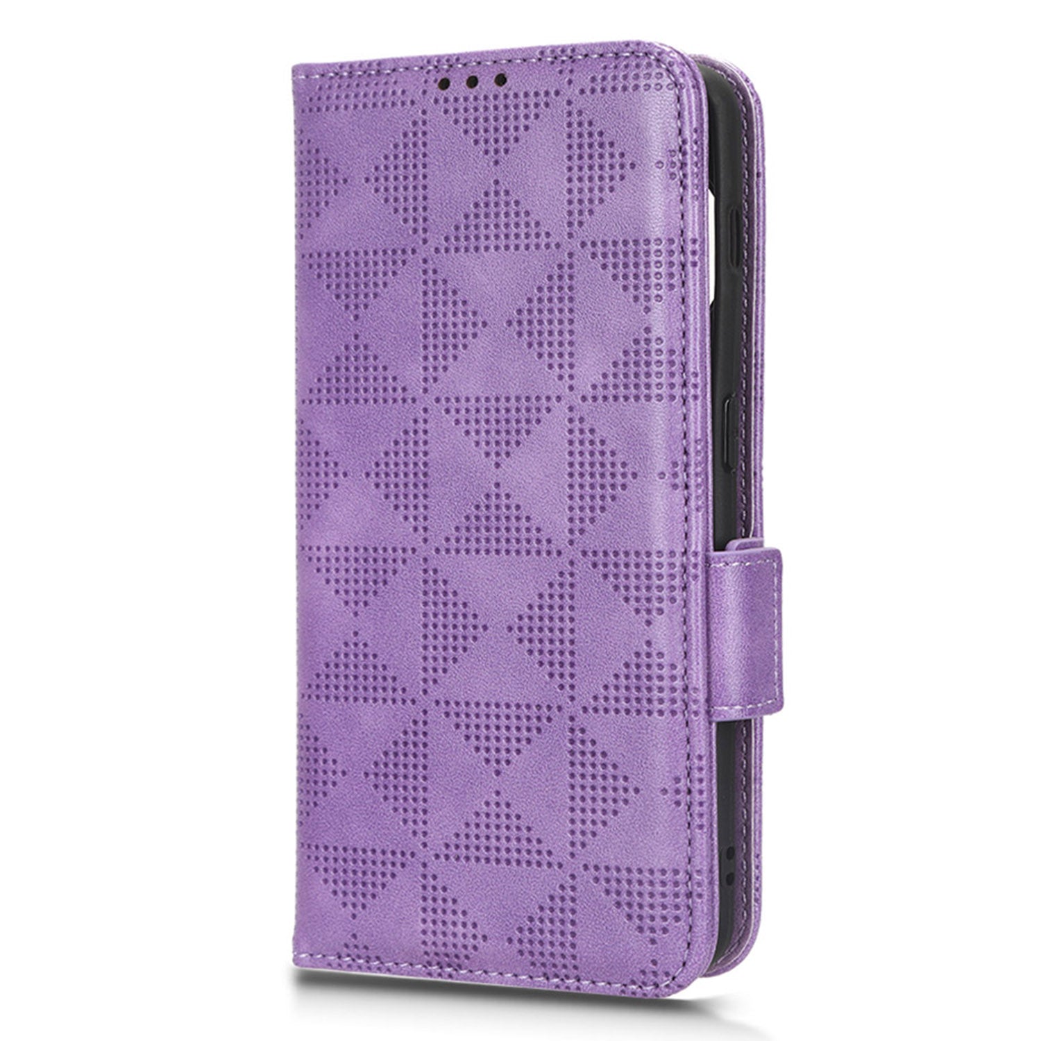 Flip Leather Phone Cover For OnePlus Ace 2 5G / 11R 5G , Wallet Stand Imprinted Triangle Pattern Phone Case - Purple