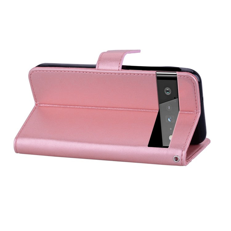 Flip Phone Case Bling Rhinestone Decor Imprinted Owl Flower Pattern Leather Wallet Shell for Google Pixel 6 Pro - Rose Gold