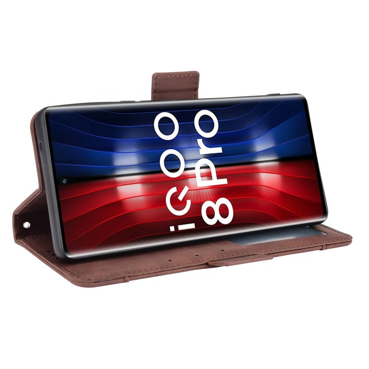 Flip Phone Case Multiple Card Slot Design PU Leather Wallet Cover Protector for vivo iQOO 8 Pro - Brown