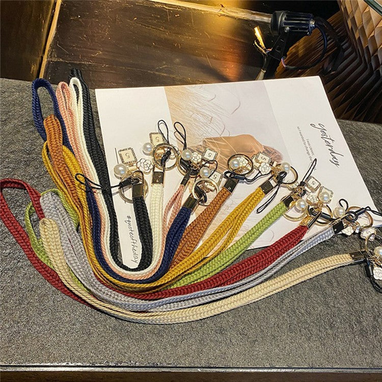 Flower Pearl Pendant Mobile Phone Anti-lost Braided Lanyard Cellphone Case Name Tag Neck Strap - Wine Red