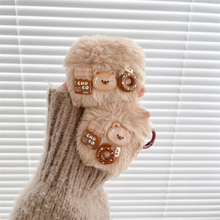 Fluff + TPU Cover for Apple AirPods Pro, Cartoon Bear / Doughnut / Chocolate Protective Case with Hook
