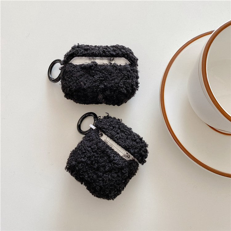 Fluff + TPU Cover for Apple AirPods Pro Charging Case Cover Bluetooth Headset Protector with Buckle - Black