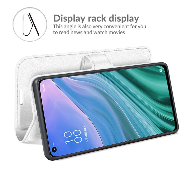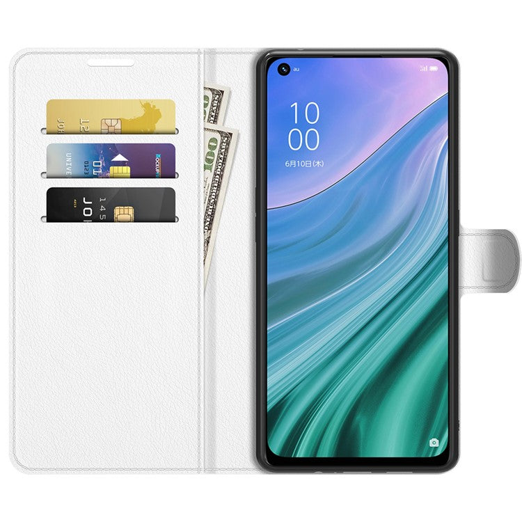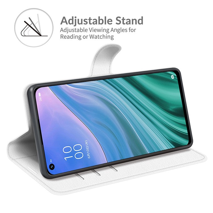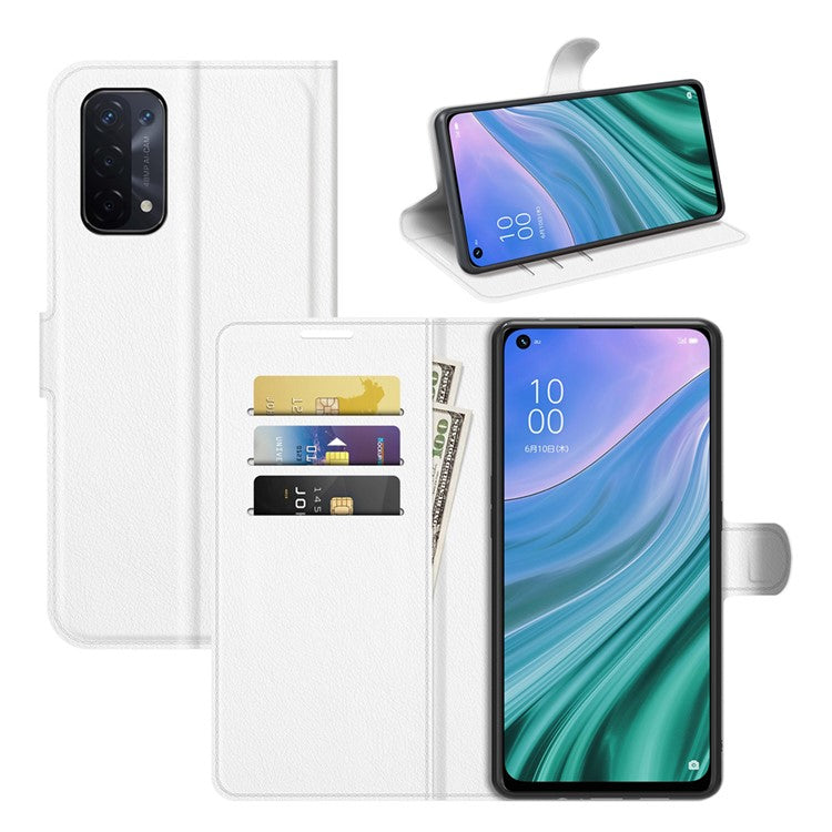 Folio Flip Litchi Texture Leather Wallet Phone Case with Stand for OPPO A54 5G/A93 5G/A74 5G/OnePlus Nord N200 5G - White