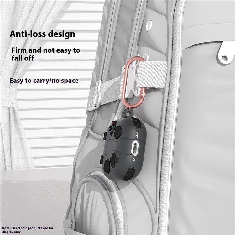 For AirPods 4 Case Game Console Shape Earphones Silicone Shell with Carabiner - Dark Grey
