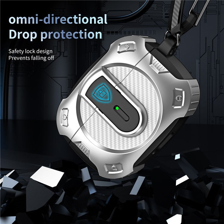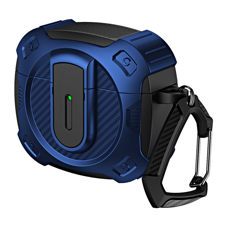For AirPods 4 Case PC+TPU Lock Design Earphone Protective Cover with Hanging Hook - Blue