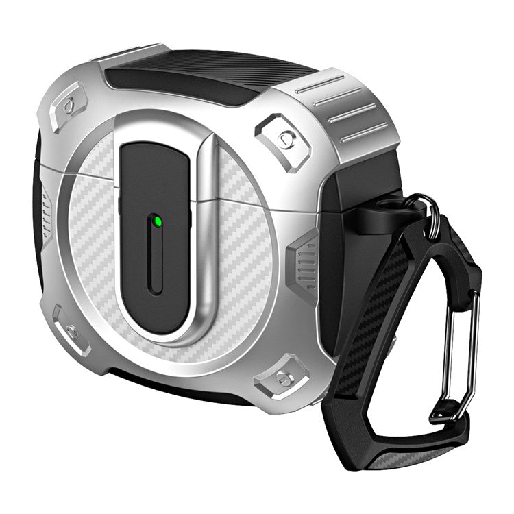 For AirPods 4 Case PC+TPU Lock Design Earphone Protective Cover with Hanging Hook - Silver