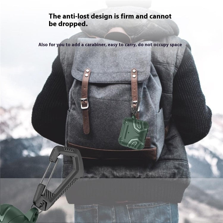 For AirPods 4 Case Split Design Soft TPU Shockproof Earphone Cover with Carabiner - Blackish Green
