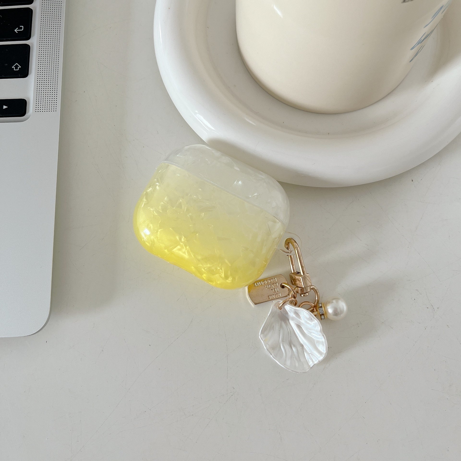 Uniqkart for AirPods Pro 2 Gradient Shell Grain TPU Case Shockproof Earphone Cover with Shell Shape Pendant - Yellow