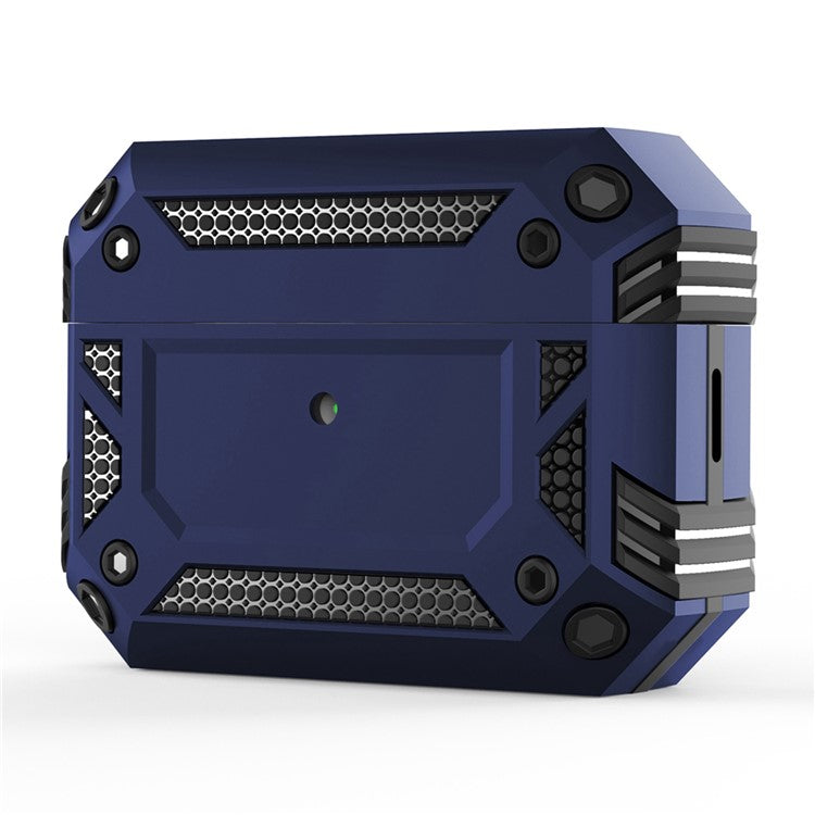 For AirPods Pro 2 Hard PC + TPU Skin Cover Shockproof Scratch Resistant Earphone Case with Carabiner - Blue