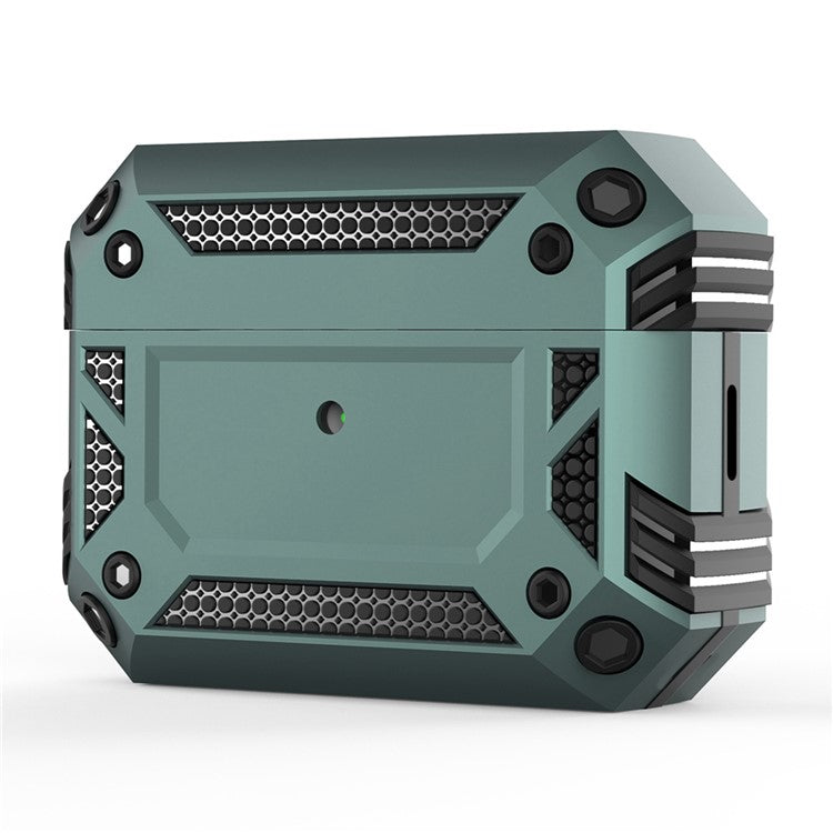 For AirPods Pro 2 Hard PC + TPU Skin Cover Shockproof Scratch Resistant Earphone Case with Carabiner - Green