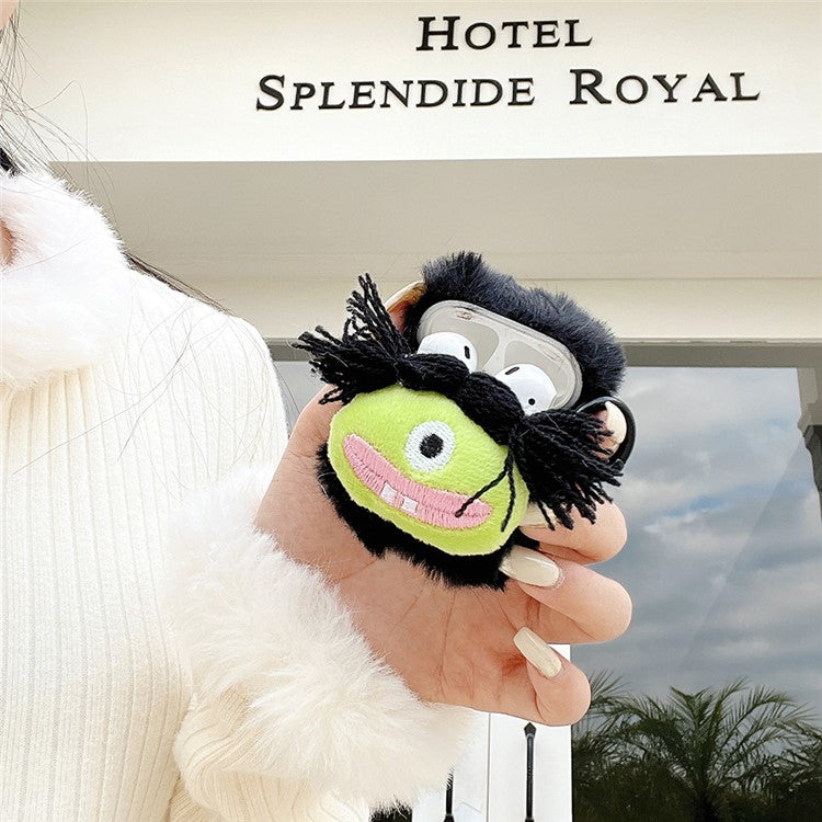 For AirPods with Charging Case (2016) / (2019) / AirPods with Wireless Charging Case (2019) Plush+TPU Parody Expression Cover with Buckle - Black