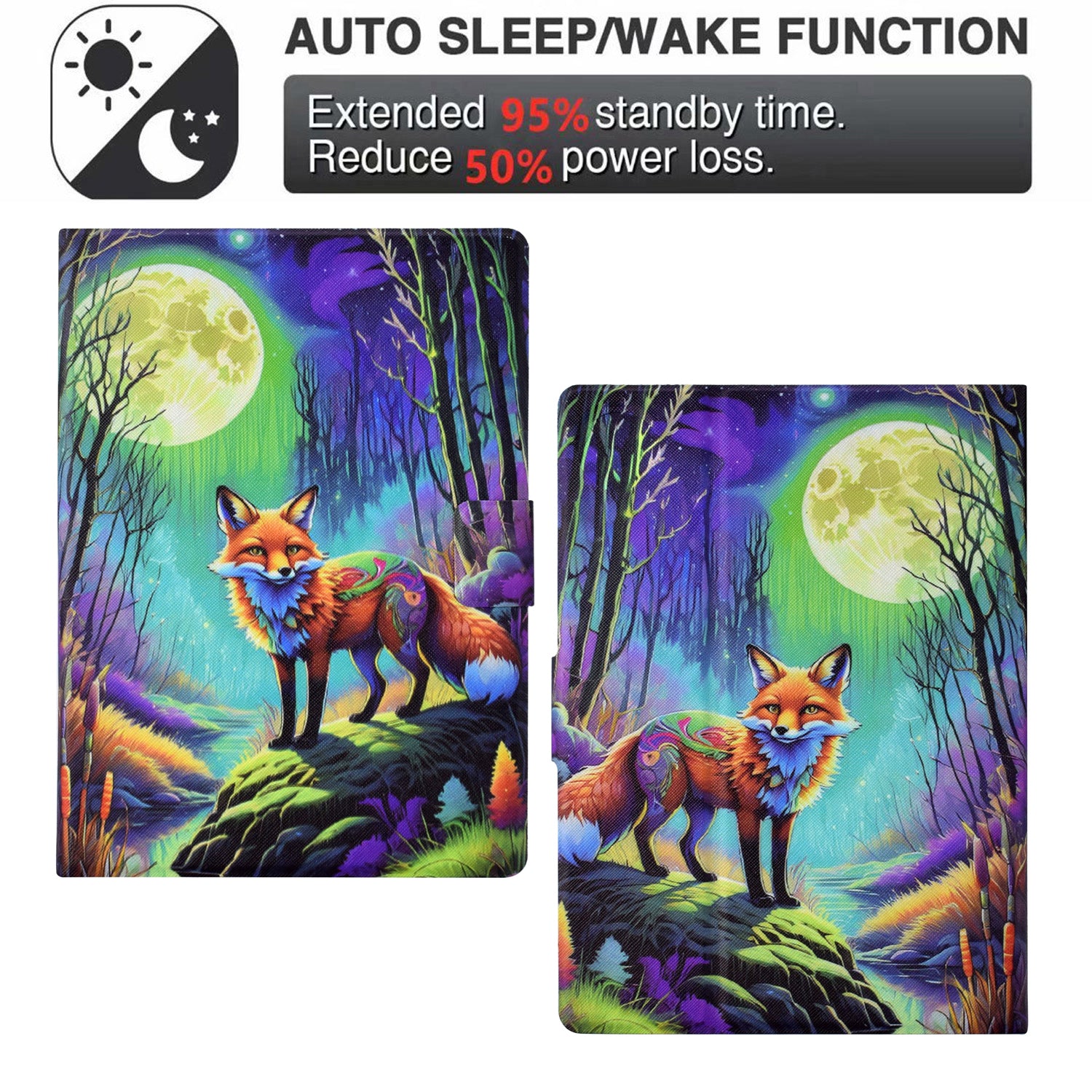 For Amazon Kindle Paperwhite (2021) Case Card Slot Pattern Printing Leather E-Reader Cover - Moonlight Fox