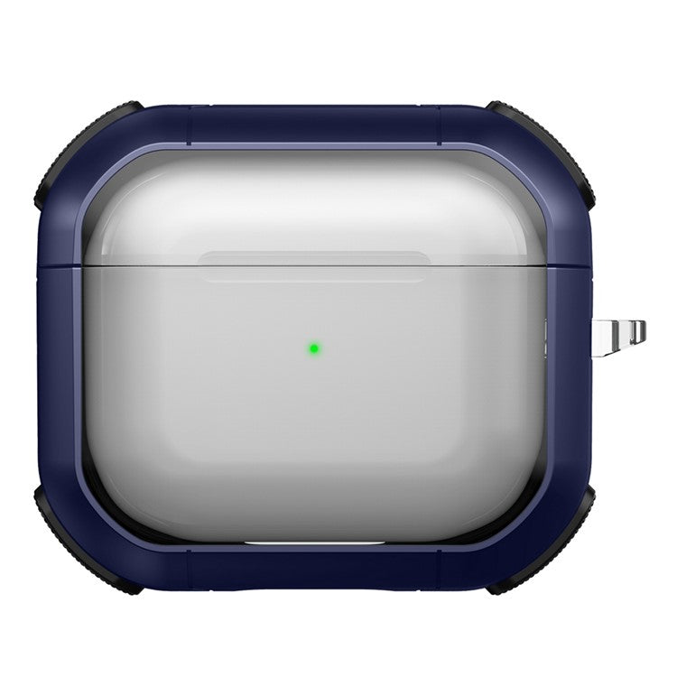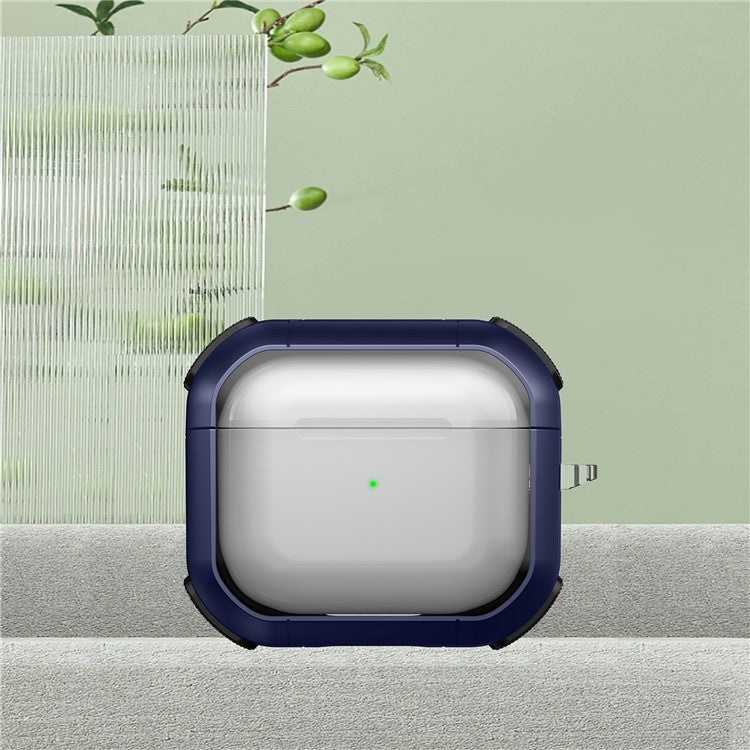 For Apple AirPods 3 Bluetooth Earphone Protective Case PC+TPU Transparent Earbud Cover with Carabiner - Blue