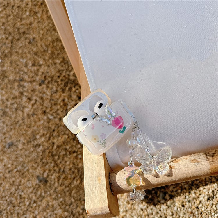 For Apple AirPods 3 Bluetooth Earphones Cover Butterfly and Flower TPU Case with Pendant
