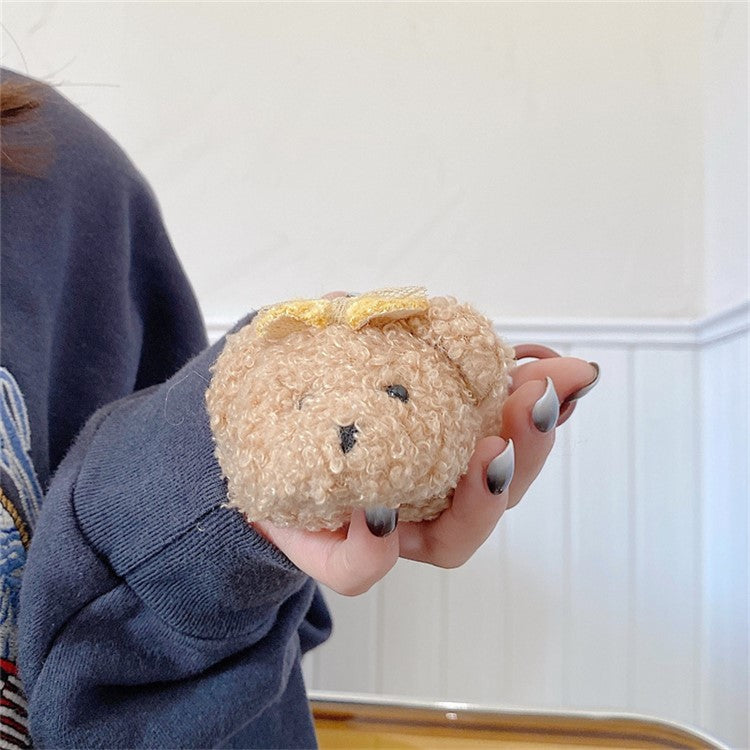 For Apple AirPods 3 Cartoon Animal Design Soft Fluff TPU Protective Cover Bluetooth Earphone Anti-drop Case with Ring Buckle - Bear