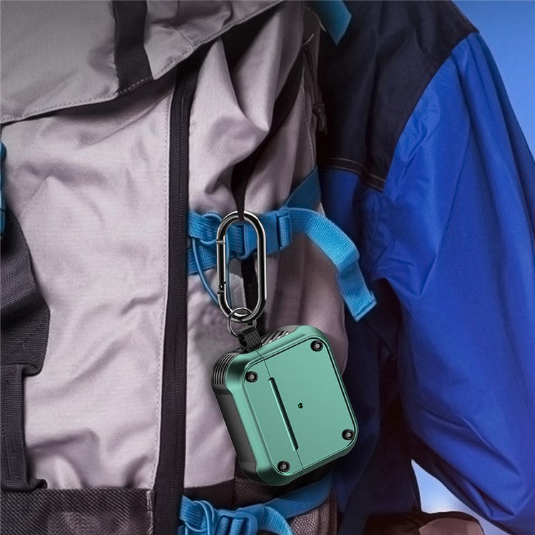 For Apple AirPods 3 Earphone Protective Case Dual-color PC+TPU Bluetooth Earbud Anti-drop Cover with Carabiner - Red