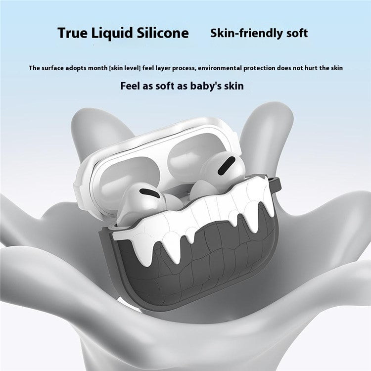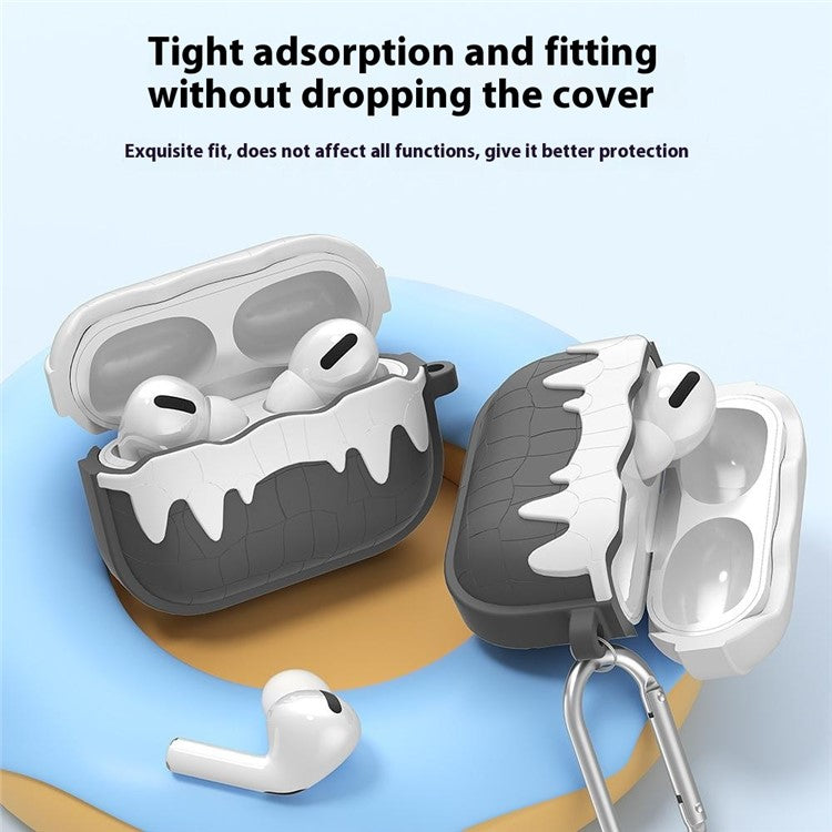 For Apple AirPods Pro 2 / AirPods Pro Bluetooth Earphones Soft Silicone Protective Case with Hanging Buckle - Fluorescent Red