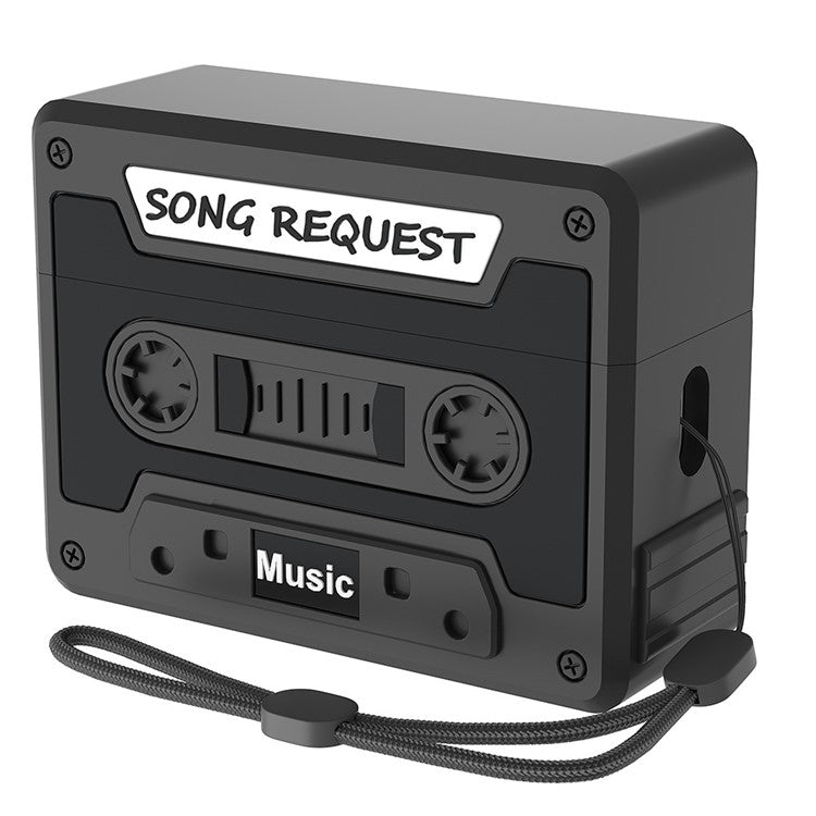 For Apple AirPods Pro 2 / AirPods Pro Case Cassette Tape Design Portable Liquid Silicone Earbuds Cover with Strap - Black