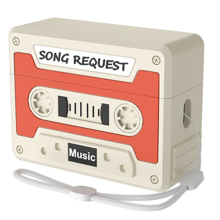 For Apple AirPods Pro 2 / AirPods Pro Case Cassette Tape Design Portable Liquid Silicone Earbuds Cover with Strap - Orange