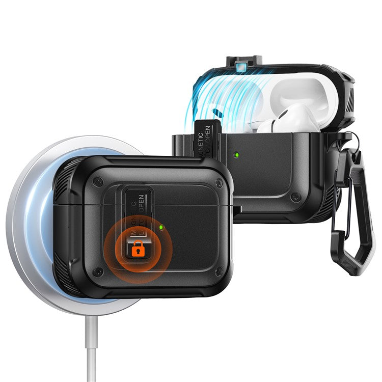 For Apple AirPods Pro 2 / AirPods Pro Case Compatible with MagSafe TPU+PC Automatic Open Earphone Cover - Black