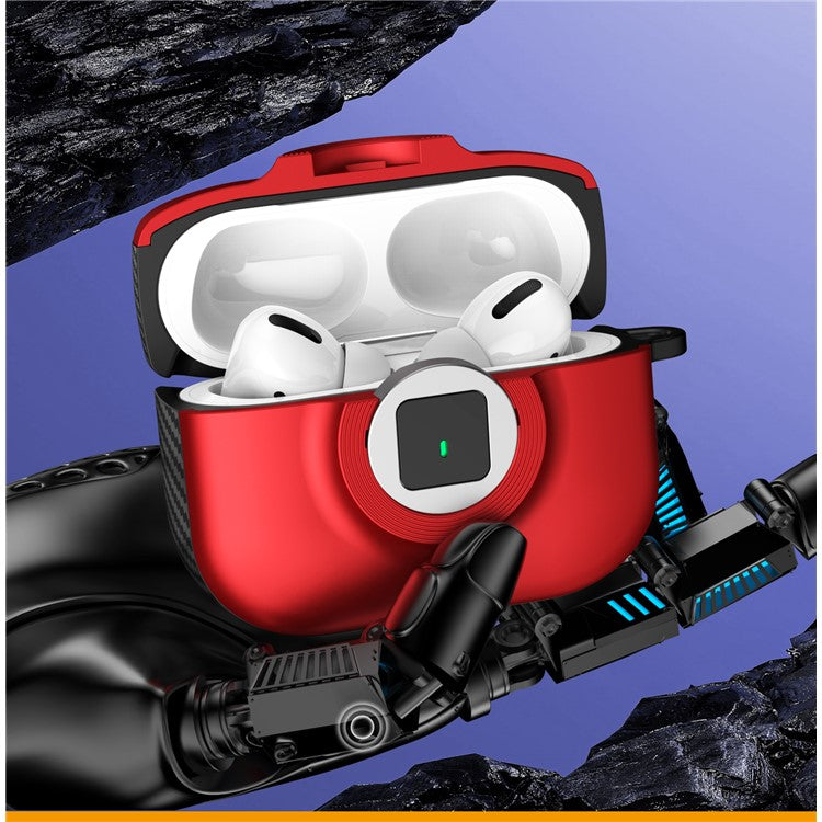 For Apple AirPods Pro 2 Case PC+TPU Flip Earphone Cover with Carabiner and Switch Lock - White