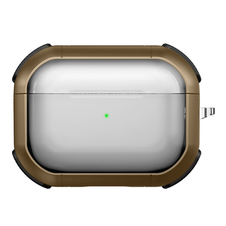 For Apple AirPods Pro 2 PC+TPU Earphone Case Bluetooth Earbud Transparent Anti-drop Cover with Carabiner - Brown