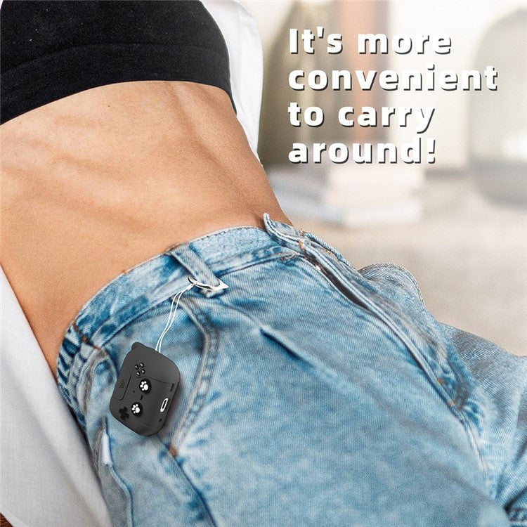 For Apple AirPods Pro / AirPods Pro 2 Silicone Case Cat Game Console Design Earphone Cover with Lanyard - Dark Grey
