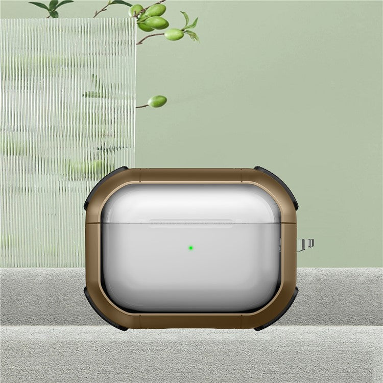 For Apple AirPods Pro Bluetooth Earphone Case Transparent PC+TPU Earbud Cover with Carabiner - Brown
