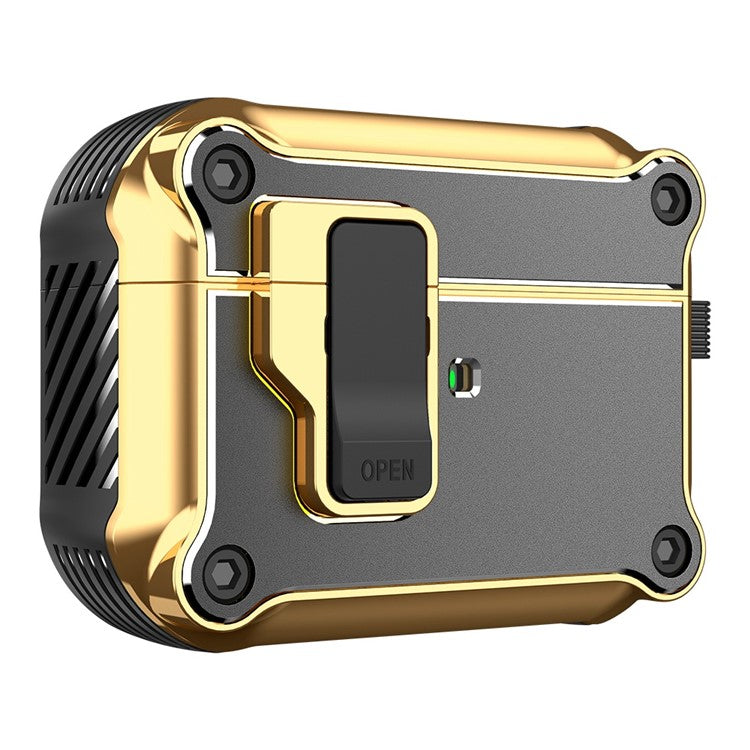 For Apple AirPods Pro Charging Case Cover Bluetooth Earbuds Shockproof Case TPU+PC + Hardware Protective Cover with Auto Opening Lock - Grey