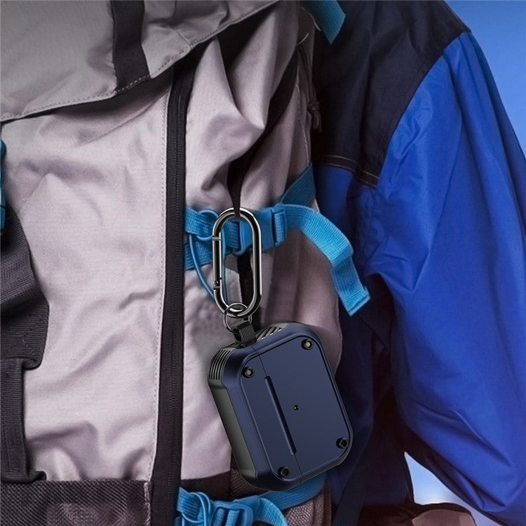 For Apple AirPods Pro Dual-color PC+TPU Earphone Shockproof Case Earbud Charging Box Anti-drop Cover with Carabiner - Red