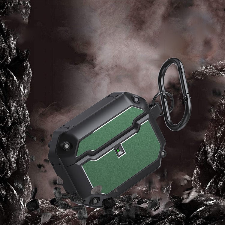 For Apple AirPods Pro Headphones Carrying Case Scratch-Resistant TPU + Hardware Cover with Keychain - Green