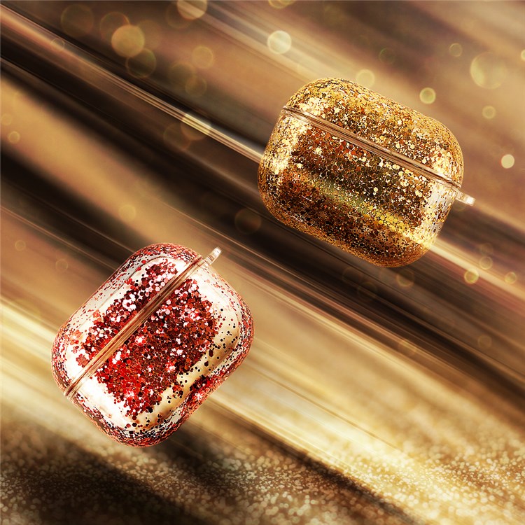 For Apple AirPods Pro Stylish Glittering Powder Quicksand Clear Based PC Full Protection Cover Case - Baby Blue