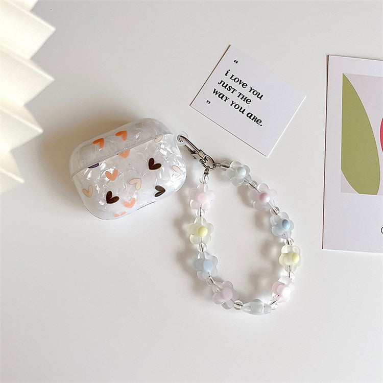 For Apple AirPods Pro Stylish Heart Pattern Bluetooth Earphone TPU Protective Cover Anti-drop Case with Flower Hand Strap